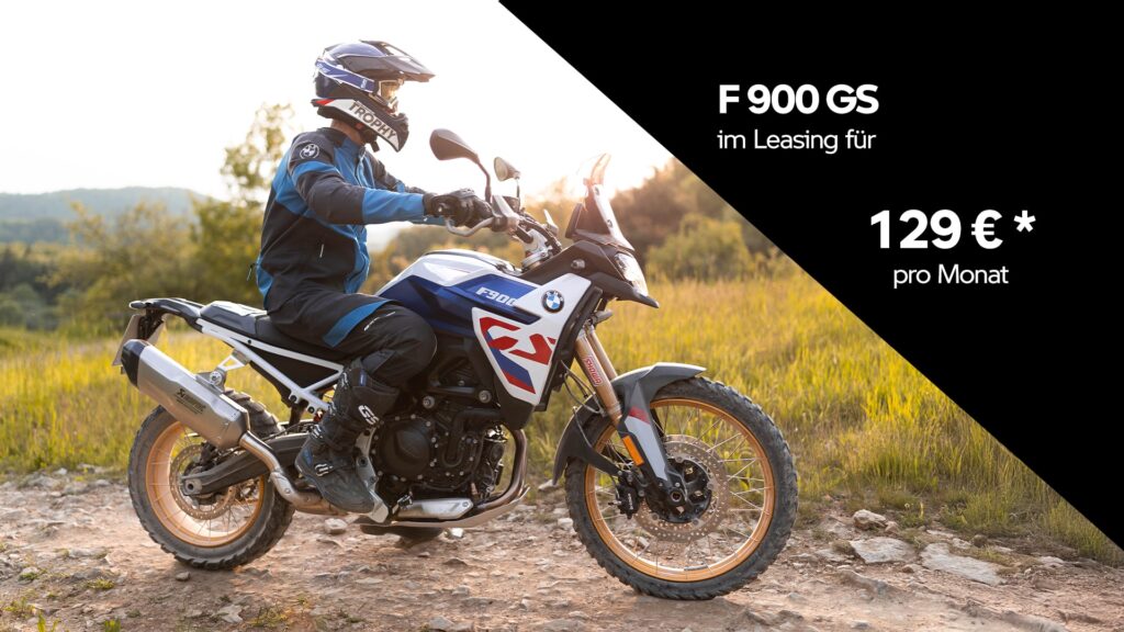 * Angebot der BMW Austria Leasing GmbH, BMW Restwertleasing für das Fahrzeug BMW F 900 GS, beinhaltet einen garantierten Restwert am Vertragsende bei vertragskonformer Nutzung. Gültig bei Kauf- und Vertragsabschluss von 01.10.2025 bis 31.12.2025, Auslieferung bis 30.04.2026. Anschaffungswert höchstens € 15.290,-, Anzahlung €3.580,-, Laufzeit 36 Monate, monatliche Leasingrate € 129,-, genaue Höhe abhängig von Sonderausstattung und Zubehör gem. individueller Konfiguration, 5.000 km p.a., Restwert € 7.943,16, Bearbeitungsgebühr € 260,-, Rechtsgeschäftsgebühr € 95,40, eff. Jahreszins 4,36%, Sollzins fix 2,99%, Gesamtbelastung € 16.522,56. Beträge inkl. NoVA und MwSt. Angebot freibleibend. Änderungen und Irrtümer vorbehalten. Angebot erhältlich bei allen teilnehmenden Händlern. Nicht kombinierbar mit anderen Leasing-Angeboten und Aktionen der BMW Austria Leasing GmbH. Für Konditionen für Gewerbetreibende stehen Ihnen die teilnehmenden BMW Partner zur Verfügung.