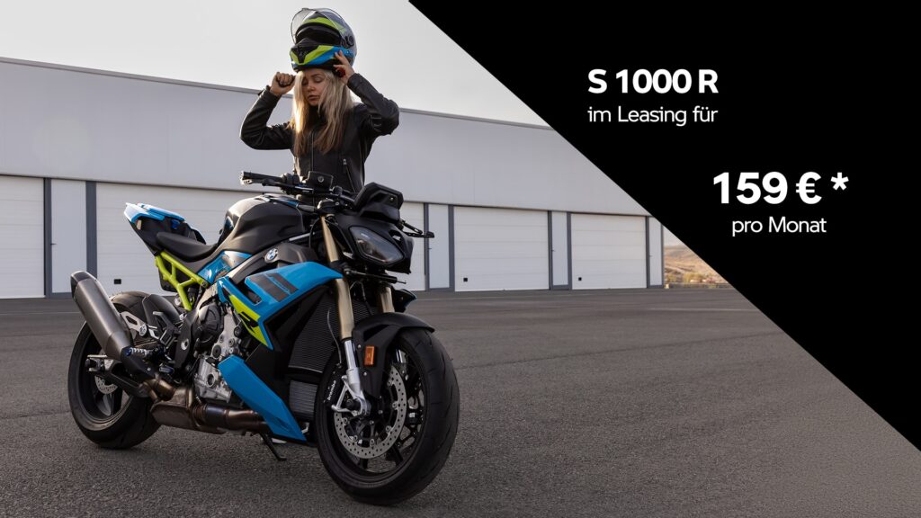 * Angebot der BMW Austria Leasing GmbH, BMW Restwertleasing für das Fahrzeug BMW S 1000 R, beinhaltet einen garantierten Restwert am Vertragsende bei vertragskonformer Nutzung. Gültig bei Kauf- und Vertragsabschluss von 01.10.2025 bis 31.12.2025, Auslieferung bis 30.04.2026. Anschaffungswert höchstens € 19.900,-, Anzahlung € 4.407,-, Laufzeit 36 Monate, monatliche Leasingrate € 159,-, genaue Höhe abhängig von Sonderausstattung und Zubehör gem. individueller Konfiguration, 5.000 km p.a., Restwert € 10.948,98, Bearbeitungsgebühr € 260,-, Rechtsgeschäftsgebühr € 117,52, eff. Jahreszins 4,08%, Sollzins fix 2,99%, Gesamtbelastung € 21.457,50. Beträge inkl. NoVA und MwSt. Angebot freibleibend. Änderungen und Irrtümer vorbehalten. Angebot erhältlich bei allen teilnehmenden Händlern. Nicht kombinierbar mit anderen Leasing-Angeboten und Aktionen der BMW Austria Leasing GmbH. Für Konditionen für Gewerbetreibende stehen Ihnen die teilnehmenden BMW Partner zur Verfügung.