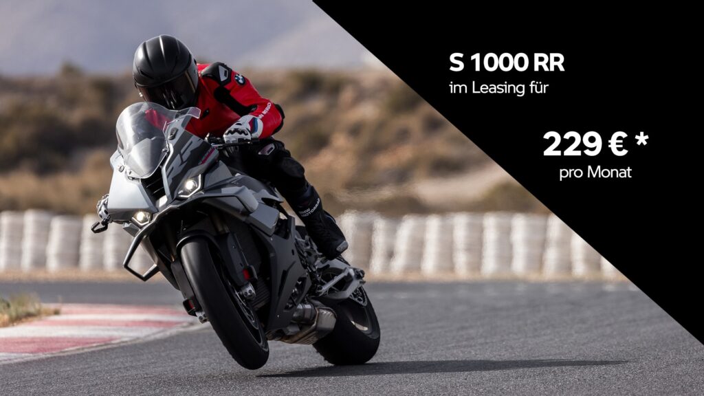 * Angebot der BMW Austria Leasing GmbH, BMW Restwertleasing für das Fahrzeug BMW S 1000 RR, beinhaltet einen garantierten Restwert am Vertragsende bei vertragskonformer Nutzung. Gültig bei Kauf- und Vertragsabschluss von 01.10.2025 bis 31.12.2025, Auslieferung bis 30.04.2026. Anschaffungswert höchstens € 26.790,-, Anzahlung € 5.822,-, Laufzeit 36 Monate, monatliche Leasingrate € 229,-, genaue Höhe abhängig von Sonderausstattung und Zubehör gem. individueller Konfiguration, 5.000 km p.a., Restwert € 14.297,82, Bearbeitungsgebühr € 260,-, Rechtsgeschäftsgebühr € 163,17, eff. Jahreszins 3,91%, Sollzins fix 2,99%, Gesamtbelastung € 28.786,99. Beträge inkl. NoVA und MwSt. Angebot freibleibend. Änderungen und Irrtümer vorbehalten. Angebot erhältlich bei allen teilnehmenden Händlern. Nicht kombinierbar mit anderen Leasing-Angeboten und Aktionen der BMW Austria Leasing GmbH. Für Konditionen für Gewerbetreibende stehen Ihnen die teilnehmenden BMW Partner zur Verfügung.