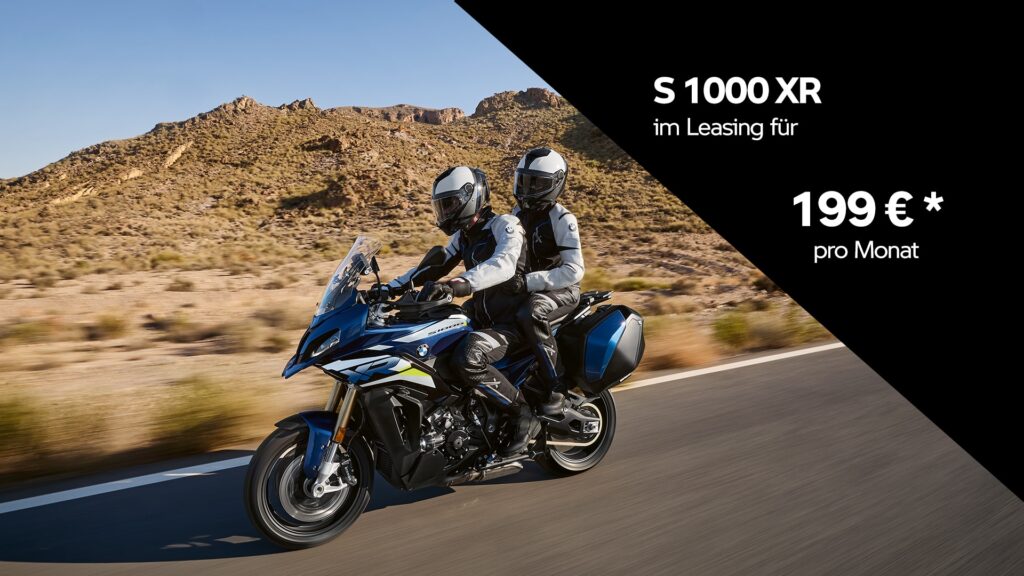 * Angebot der BMW Austria Leasing GmbH, BMW Restwertleasing für das Fahrzeug BMW S 1000 XR, beinhaltet einen garantierten Restwert am Vertragsende bei vertragskonformer Nutzung. Gültig bei Kauf- und Vertragsabschluss von 01.10.2025 bis 31.12.2025, Auslieferung bis 30.04.2026. Anschaffungswert höchstens € 22.690,-, Anzahlung € 5.052,-, Laufzeit 36 Monate, monatliche Leasingrate € 199,-, genaue Höhe abhängig von Sonderausstattung und Zubehör gem. individueller Konfiguration, 5.000 km p.a., Restwert € 11.787,46, Bearbeitungsgebühr € 260,-, Rechtsgeschäftsgebühr € 141,71, eff. Jahreszins 4,03%, Sollzins fix 2,99%, Gesamtbelastung € 24.405,17. Beträge inkl. NoVA und MwSt. Angebot freibleibend. Änderungen und Irrtümer vorbehalten. Angebot erhältlich bei allen teilnehmenden Händlern. Nicht kombinierbar mit anderen Leasing-Angeboten und Aktionen der BMW Austria Leasing GmbH. Für Konditionen für Gewerbetreibende stehen Ihnen die teilnehmenden BMW Partner zur Verfügung.